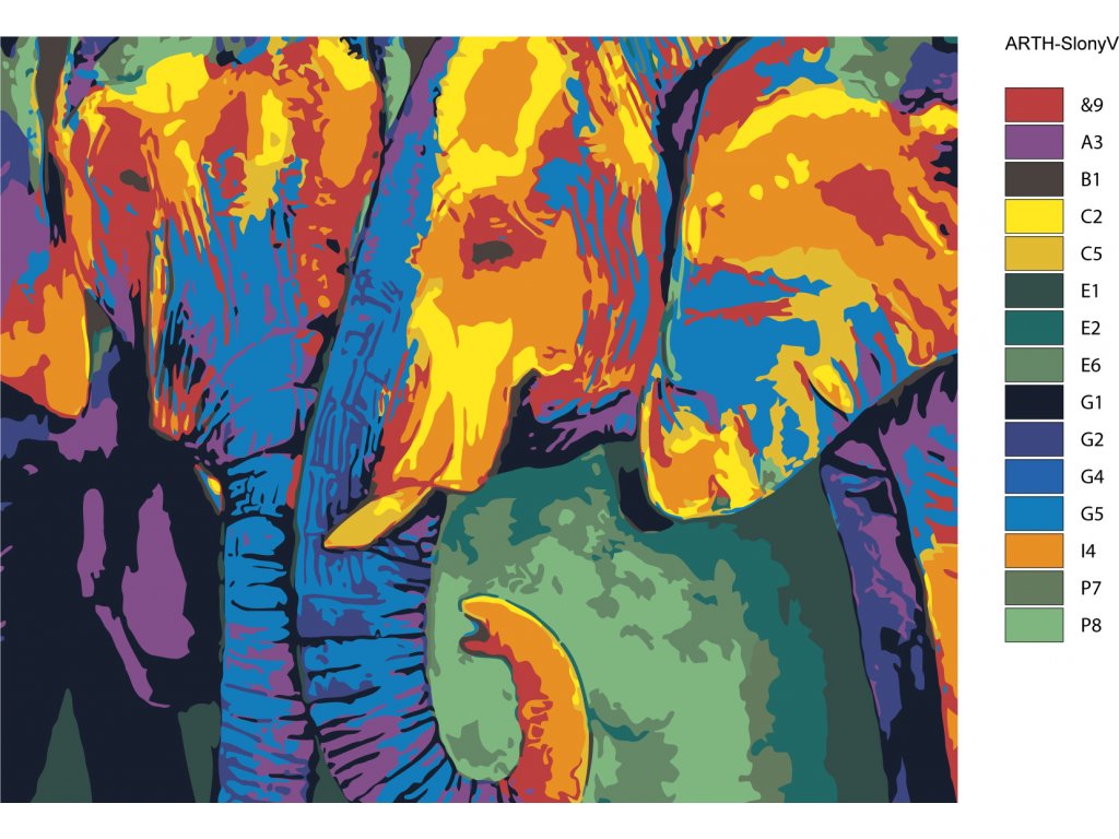 Malování podle čísel - BAREVNÝ SLONÍ PÁR