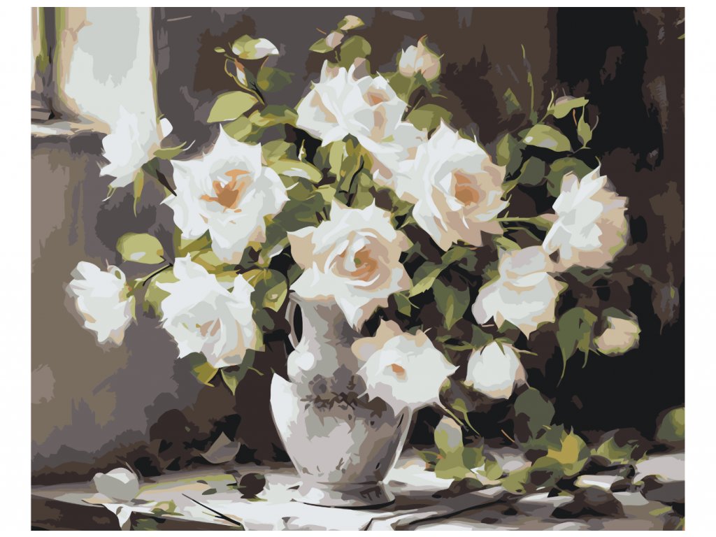 Malování podle čísel - BÍLÉ RŮŽE VE VÁZE