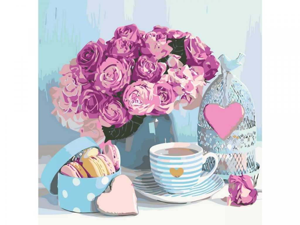 Malování podle čísel - MARIANNA LOKSHINA - RŮŽE A MAKRONKY