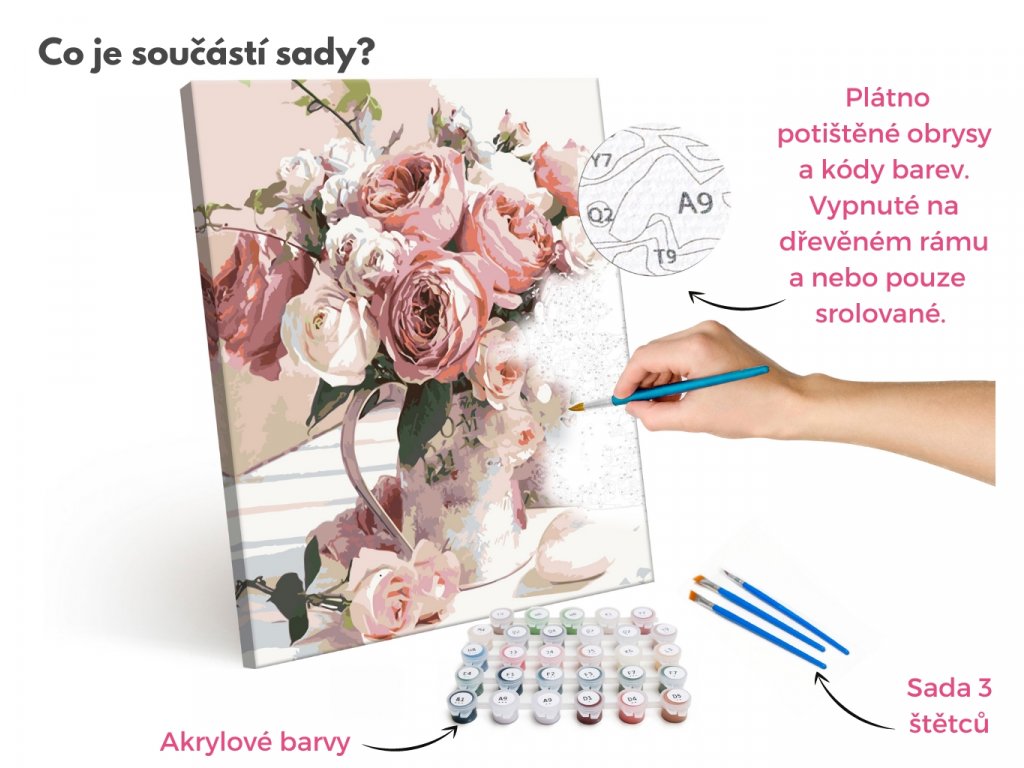 Kvalitní plátno natažené na dřevěném rámu (100% smrkové dřevo), štětce a vysoce kvalitní akrylové barvy - Váš obraz se stane skutečným uměleckým dílem!