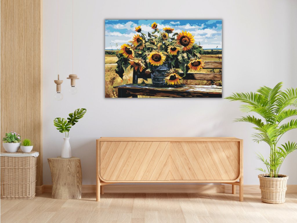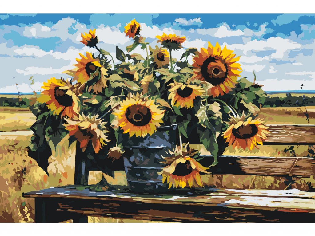 Malování podle čísel - SLUNEČNICE NA LAVIČCE