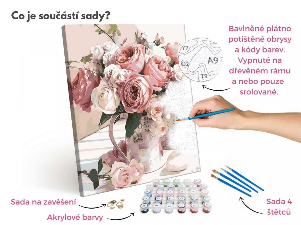 Kvalitní plátno natažené na dřevěném rámu (100% smrkové dřevo), štětce a vysoce kvalitní akrylové barvy - Váš obraz se stane skutečným uměleckým dílem!