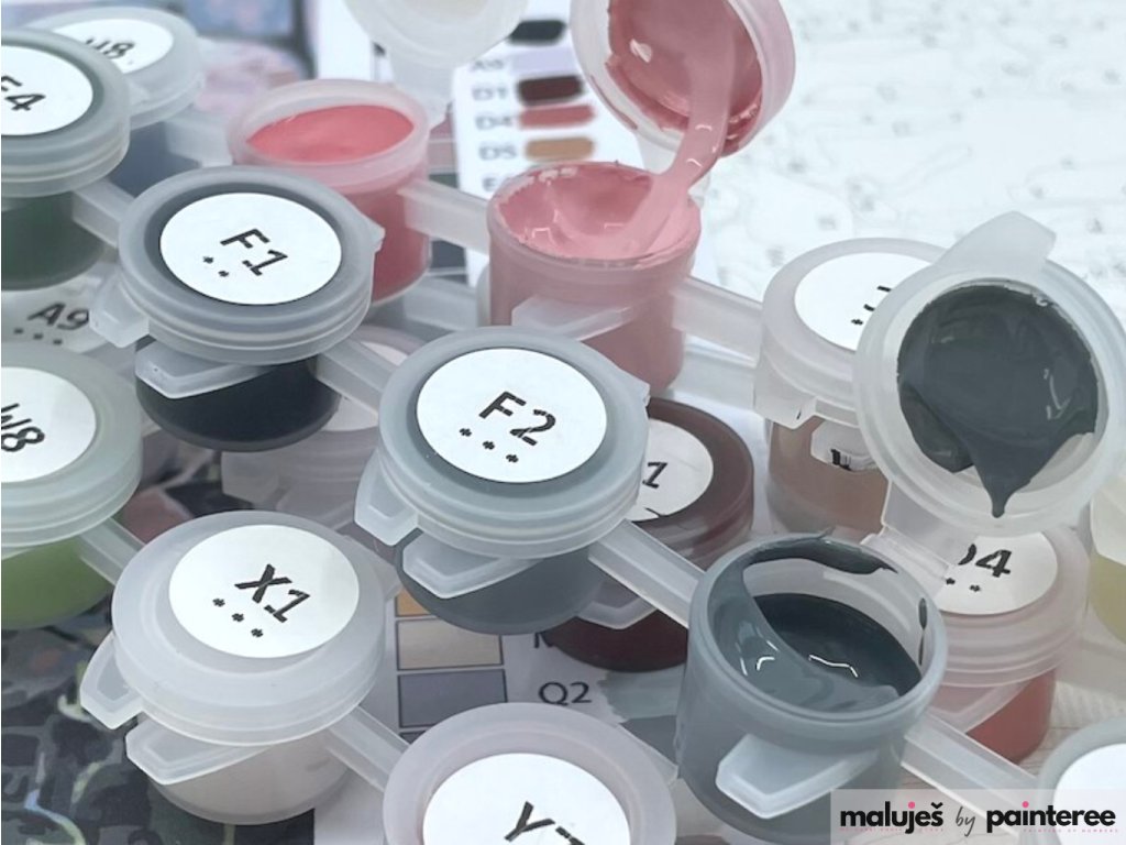 Více než 250 různých odstínů barev připravených našimi umělci. Další míchání barev není třeba! Jasné kontury polí, pole označená čísly dle příslušných akrylových barev, umožňují přesnou reprodukci obrazu. Vyberte barvu dle čísla pole a začněte své umělecké dobrodružství!