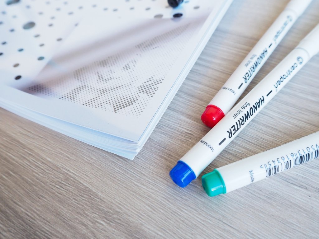- 1 černá fixka NEBO 4 tenké fixky v černé, modré, červené a zelené barvě